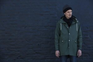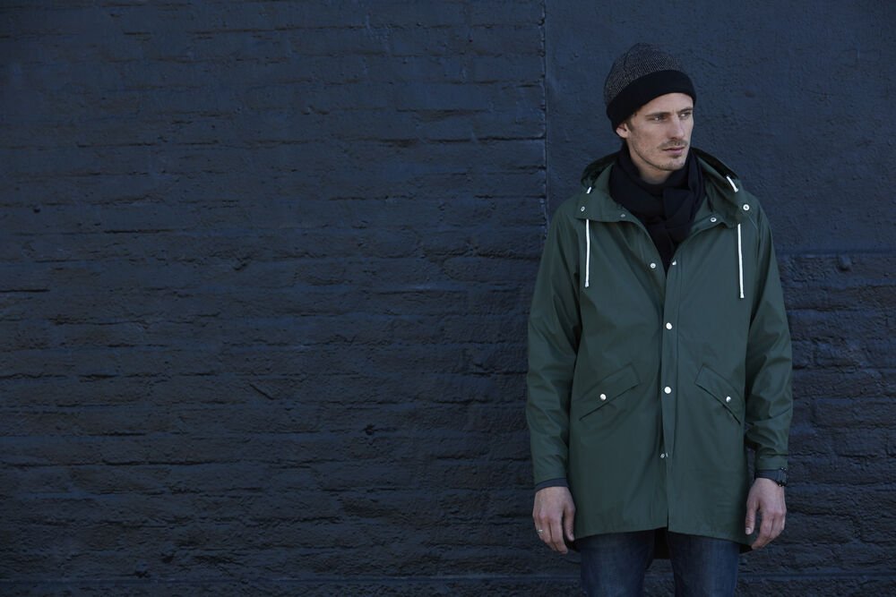 Klassieke halflange regenjas voorzien van metalen drukknopen voor een unieke uitstraling. De jas is uitgerust met een verstelbare capuchon en twee zakken aan de voorzijde. Verder is er gedacht aan het ademend vermogen door de metalen ventilatiegaten onder de armen. De getapete naden dragen bij aan de bescherming tegen wind en water.