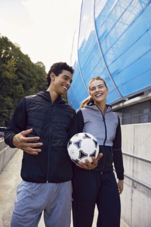 Een licht gewatteerd jack met moderne snit. Kleur 949 heeft grote reflecterende vlakken voor extra zichtbaarheid. De rits aan de voorzijde en de twee zijzakken zijn waterdicht. Verder is het jack afgewerkt met een doorvoer voor een koptelefoon en een eenvoudig te verwijderen label.