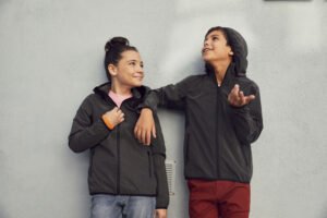 Functioneel reflecterend windjack met afneembare capuchon voor betere kinderveiligheid. Dit jack heeft een bird’s eye-voering in de capuchon en bij de oksel voor meer comfort en ademend vermogen. Voorzien van twee zijzakken met rits en twee binnenzakken. Afgewerkt met contrastband rond de capuchon, boord en mouwen.
